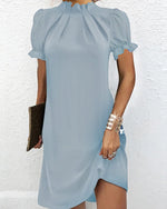 SPÉCIFICATIONS Style: Décontracté Matériel: Mélange de coton Type de la robe: Robe jambe droite Longueur de la robe: Longueur du genou Forme du col: Col rond Type du dessin: Couleur pure Type de la manche: Manches évasées Longueur de la manche: Manches longues Détails: Froncé Type d'ajustement: Habituel Saison: Automne,Hiver Occasion: Quotidie...