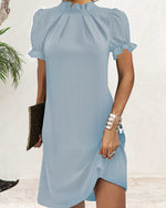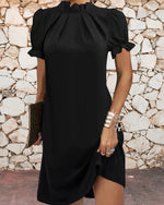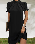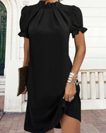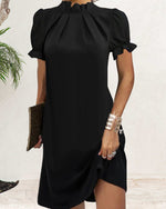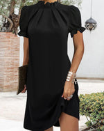 Robe Élégante À Manches Ballon Et Détails Patchwork
