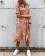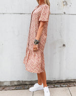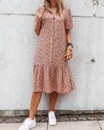 SPÉCIFICATIONS Style: Décontracté Matériel: Mélange de coton Type de la robe: A-Line Longueur de la robe: Midi Forme du col: Col à revers Type du dessin: Impression Type de la manche: Manches régulières Longueur de la manche: Manches neuf points Type d'ajustement: Habituel Saison: Printemps,Été Occasion: Quotidien Contenu du colis: 1 x Robe TA...