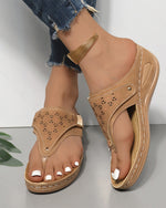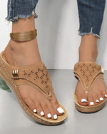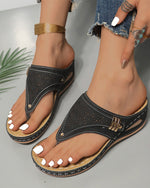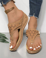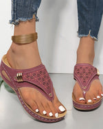 Sandale Vintage Couleur Unie Fleurie Compensée