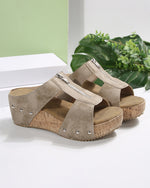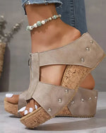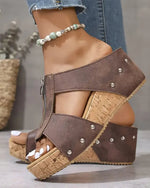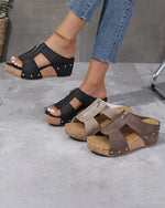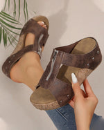 Sandale Vintage Couleur Unie Fleurie Compensée