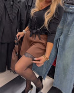 Short taille haute tendance en patchwork de couleur unie