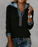 Sweat-shirt décontracté à capuche et empiècements gaufrés