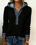 Sweat à capuche patchwork à manches longues en couleurs unies