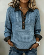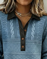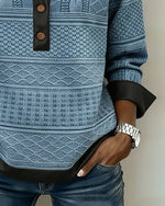 Sweat-Shirt Boutonnée Col V À Blocs De Couleur