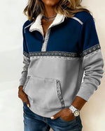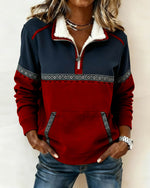 Sweat-Shirt Demi-Fermeture Éclair Doublé Polaire À Blocs De Couleur