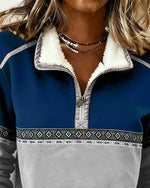 Sweat-Shirt Boutonnée Col V À Blocs De Couleur