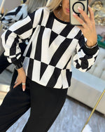 Sweat À Motif Géométrique Et Col Mi-Éclair