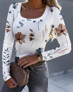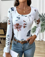 T-shirt décontracté imprimé à col rond et manches longues