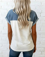 T-shirt avec un Cou en U en Bloc de Couleurs Casual