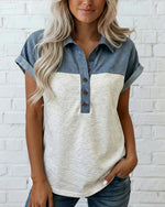 T-Shirt Mode Décontracté Bouton Col V