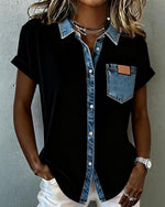 Icon1 T-Shirt Denim Patchwork Col Retourné