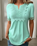T-shirt Élégant Col V Dentelle Découpe