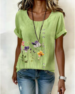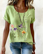 T-Shirt À Imprimé Fleuri Mode Manche Courte