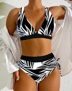 Maillot De Bain Haute Taille Rayé Deux-Pièces Triangle