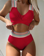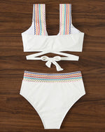 Maillot De Bain Haute Taille Rayé Deux-Pièces Triangle