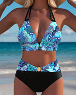 SPÉCIFICATIONS Style: Vacances Matériel: 15% Élasthanne,85% Fibre polyester Occasion: Vacance Type du dessin: Impression Longueur de la manche: Sans manches Type de maillot de bain: Bikini Type de soutien-gorge: Soutien-gorge sans fil métallique Type du slip de bain: Slip taille haute Type d'ajustement: Collant Détails: Sans dos ,Sangles à cra...