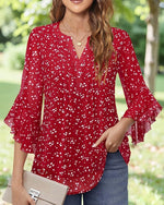 Blouse Rétro Imprimé Encolure En V