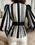 Blouse À Manches Bouffantes Rayée À Col