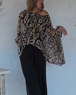 Blouse À Manches Longues Avec Imprimé Chauve-Souris Irrégulier