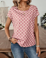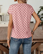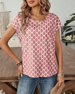 Blouse Col Rond Imprimé Losange Manches Courtes