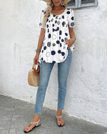 Blouse Col Rond Manches Courtes Imprimée