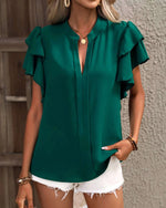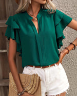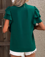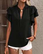 SPÉCIFICATIONS Type de la veste: Chemisiers Style: Décontracté Matériel: Mélange de coton Occasion: Quotidien Forme du col: Col rond Type du dessin: Fleurs,Impression Type de la manche: Manches à volants Longueur de la manche: Manches courtes Type d'ajustement: Habituel Saison: Printemps,Été Détails: Couture de matériau,Volants Contenu du coli...