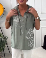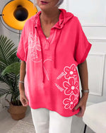 Blouse décontractée à capuche et manches courtes à imprimé floral