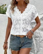 SPÉCIFICATIONS Type de la veste: Hauts Style: Décontracté Matériel: 100% Coton Occasion: Quotidien Forme du col: Col rond Type du dessin: Couleur pure Type de la manche: Manches raglan Longueur de la manche: Manches 3/4 Type d'ajustement: Ample Saison: Printemps, Été, Automne Détails: Évider, Dentelle Contenu du colis: 1 x Haut TABLEAU DES ...