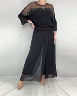 Ensemble Blouse En Dentelle Et Résille Avec Robe Nuisette Drapée