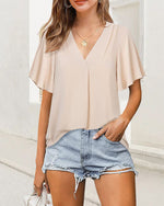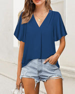 CARACTÉRISTIQUES Plis élégants : doté de plis délicats, ce haut ajoute une touche de sophistication à n'importe quel look. Confort pur : profitez d'un confort ultime avec ce haut léger et respirant à manches courtes. Plusieurs couleurs : disponible dans une variété de couleurs unies pour s'adapter à votre style personnel. Vêtements polyvalen...