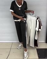 Icon1 Costume Décontracté Col En V Couleur Contrastée Sport