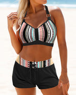 Maillot De Bain Haute Taille Rayé Deux-Pièces Triangle