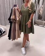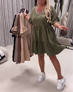 Icon1 Robe Col En V Manche À Volants Coupe A