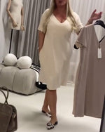 SPÉCIFICATIONS Style: Décontracté Matériel: Mélange de coton Type de la robe: Robe jambe droite Longueur de la robe: Au-dessus du genou Forme du col: Col rond Type du dessin: Couleur pure Type de la manche: Manches régulières Longueur de la manche: Manches courtes Type d'ajustement: Habituel Saison: Printemps,Été Occasion: Quotidien Contenu du...