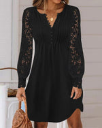 SPÉCIFICATIONS Style: Décontracté Matériel: Mélange de coton,Dentelle Type de la robe: A-Line Longueur de la robe: Au-dessus du genou Forme du col: Col en V Type du dessin: Couleur pure Type de la manche: Manches régulières Longueur de la manche: Manches longues Type d'ajustement: Habituel Saison: Automne,Hiver Occasion: Quotidien Contenu du c...