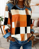 Sweat À Motif Patchwork À Carreaux Et Couleur Contrastée