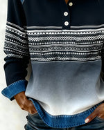 Sweat Avec Design à Col Lapel à Boutons, Motif Rayé Et Couleur Dégradée