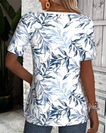 Icon1 T-Shirt Col En V Manches Courtes Imprimé Feuilles De Bambou