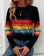 T-shirt décontracté à col rond imprimé arc-en-ciel