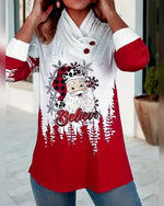 T-shirt décontracté à manches longues imprimé Père Noël