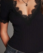NOUV Icon1 T-Shirt Dentelle Patchwork Côtelé