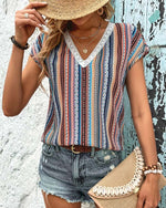 T-Shirt Imprimé Coloré En Dentelle Col En V