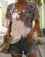 T-Shirt Imprimé Fleuri Col En V Manches Courtes