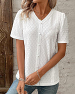 CARACTÉRISTIQUES Plis élégants : doté de plis délicats, ce haut ajoute une touche de sophistication à n'importe quel look. Confort pur : profitez d'un confort ultime avec ce haut léger et respirant à manches courtes. Plusieurs couleurs : disponible dans une variété de couleurs unies pour s'adapter à votre style personnel. Vêtements polyvalen...