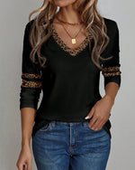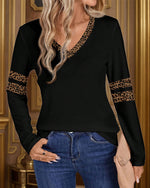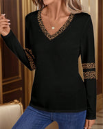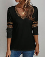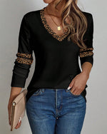 Top Avec Design à Col V, Motif de Léopard Et Détail de Bloc de Couleur