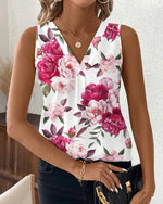 Une Blouse Sleeveless au Col V avec Impression de Roses
