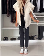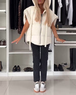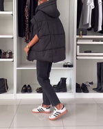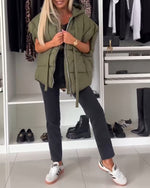 Veste matelassée décontractée à capuche avec poche zippée et couleur unie